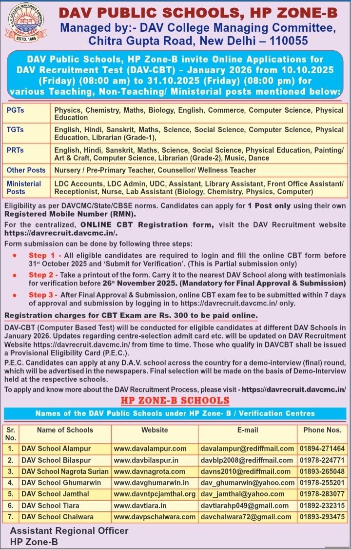 Near Dc Residence, Changer Sector Bilaspur, Himachal Pardesh, 174001 Email :- davblp2008@rediffmail.com